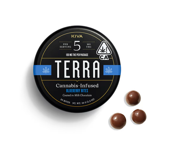 Dried US-grown blueberries are dusted with cocoa powder and finished with a generous coating of delicious milk chocolate polished to sweet, tart, irresistible perfection. Each 5MG bite takes 10+ hours to create and is handmade using cold-water cannabis extract infused into sustainably sourced premium cacao. Since 2010, Kiva's goal has been to create an edible that redefines what a cannabis confection can be. From their artisanal approach to making chocolates to their inventive take on gummies, Kiva is dedicated to crafting delicious, trustworthy, and premium edibles you can feel good about eating. 20 servings per package. Each serving contains 5mg THC, for a relaxing, balanced experience. Ingredients: Milk Chocolate (Sugar, Cocoa Butter, Milk, Unsweetened Chocolate, Sunflower Lecithin, Vanilla), Cultivated Blueberry (Sugar, Blueberry, Sunflower Oil), Gum Arabic, Cannabis Extract, Cocoa Powder, Confectioner's Glaze, Natural Flavor, Citric Acid, Sucrose, Glucose Syrup. Dietary information: Contains milk. Made in a facility that processes nuts, soy and gluten. (License No. CDPH-10002402)