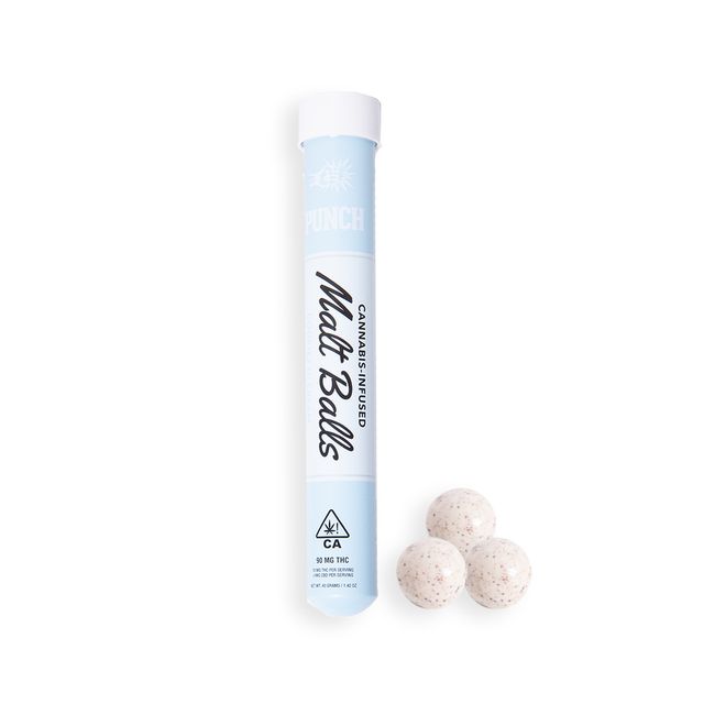 A play on your favorite childhood chocolate, Punch introduces the new Punch Malt Balls. Enjoy the crunchy Cookies N Cream flavor and the balanced, uplifting hybrid effect. ~10MG THC per piece: 9 pieces per package, 100MG THC total per package. Made with Premium Concentrates to ensure consistent flavor and potency. (License No. CDPH-10003615)