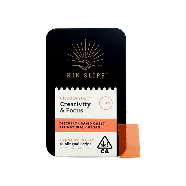 Cloud Buster™ is crafted with uplifting cannabinoids and terpenes. Excellent for a morning boost or conquering that 3pm slump. Its light flavor delights the palate with hints of tarragon and citrus. Kin Slips offer easy sublingual absorption, rapid uptake, a consistent experience, and precise dosing. 10mg THC per serving, 10 servings total. Ingredients: Pullulan, Grapeseed Oil, Cannabis Oil, Tapioca Starch, Glycerin, Gum Arabic, Sunflower Lecithin, Quillaja Extract, Natural Flavors, Natural Colors (Beet, Annatto), Natural Terpenes, Monk Fruit Extract, Water (License No. CDPH-10001148)