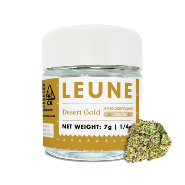 Desert Gold is your on-the-go secret weapon. Great for going out, getting stuff done, and finishing your next masterpiece. The vibe is uplifting, creative, and inspiring. By combining natural sunlight and supplemental eco-friendly lighting sources, LEUNE Mixed Light Flower brings the benefits of both cultivation techniques together into 1 ready-to-grind package. Sit back and relax. Weight 1/4 oz. (License No. C11-0000150-LIC, C11-0000340-LIC)