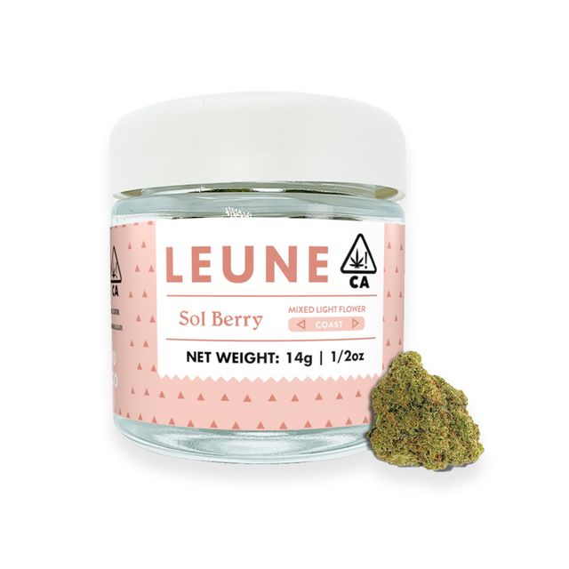 Sol Berry is your daytime, nighttime, anytime companion. Great for chilling and great for doing. The vibe is social, euphoric, and perfect for coasting. By combining natural sunlight and supplemental eco-friendly lighting sources, LEUNE Mixed Light Flower brings the benefits of both cultivation techniques together into 1 ready-to-grind package. Sit back, relax, and let LEUNE be your THC (Trusted High Curator) - bringing you a thoughtful offering of the best craft and small batch, cannabis experience that matches your favorite LEUNE archetype. Weight: 1/2 oz. (License No. C11-0000150-LIC, C11-0000340-LIC)