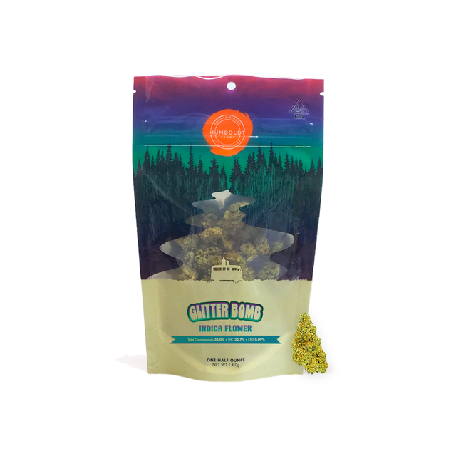 "Coated with glittery crystal trichomes, this dazzling cross of Grape Gas x OG Kush Breath x Blueberry Headband sparkles with sweet blueberry grape flavor layered with floral and skunky haze undertones. Experience our premium flower in a primo size. We reserve our finest flower in limited batches for the connoisseur who wants the best quality buds at the best price on the market. Weight: 1/2 oz. (License No. CCL18-0003380)