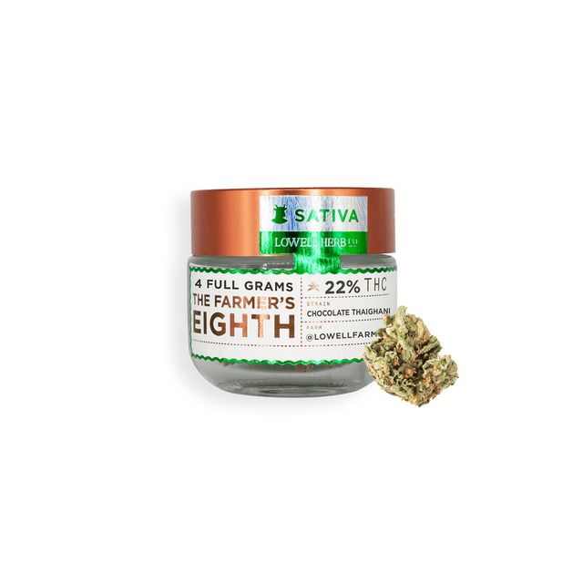 Chocolate Thaighani has a smooth smoke with hints of almond flavors and a soft clove aftertaste. After the first exhale, a new level of patience sets in. It’s also known to be good for temporary relief after a long day or a hard workout. Sometimes, a little extra can go a long way. That’s why we sweat the smallest details, from cultivation to packaging, to ensure we’re always giving you a little more. And now, when you purchase a Lowell Farmer's Eighth, you get a little extra, every time. Weight: ⅛ oz. (License No. C11-000816-LIC)