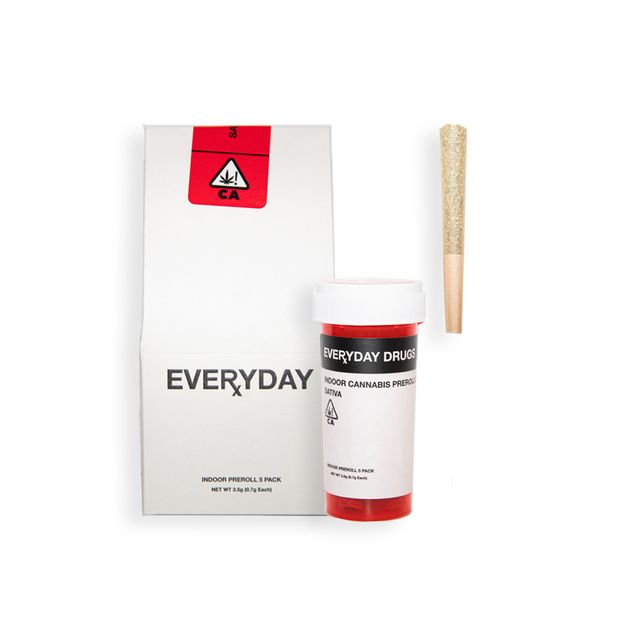 Sweet and mellow, this sativa is perfect for an easygoing high. Everyday partners with master indoor growers to produce exotic bud tailored to the discerning consumer. This is cannabis made for daily consumption. Contains five 0.7gram prerolls. Weight: 3.5g (License No. CDPH-10003907)