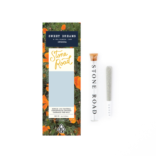 "Sweet Dreams is a delicious indica strain known for its earthy and sweet flavor and euphoric effects. This varietal is enhanced with an 18% bubble hash and 1% diamond infusion, increasing its potency and flavor profile.