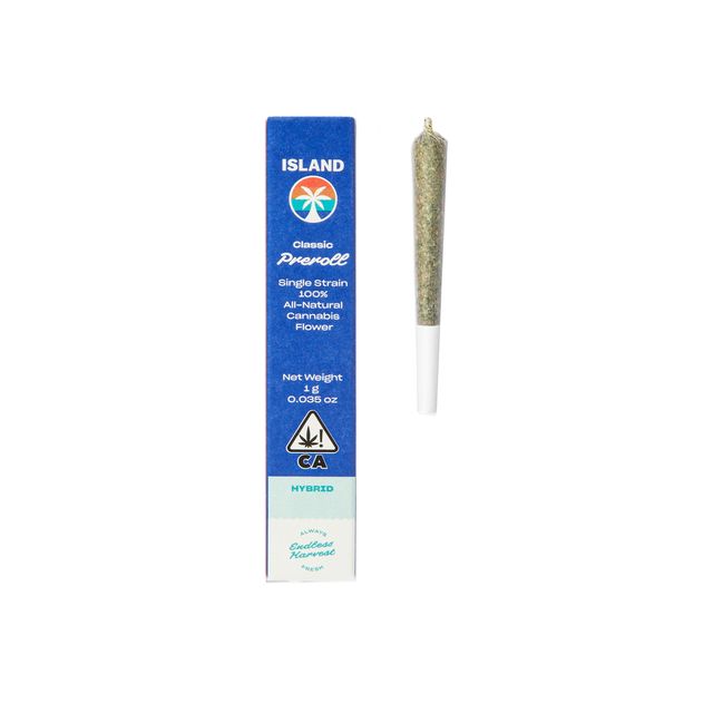 Bask in the rays with an Island Pacific Dream Classic. This perfect preroll is freshly hand packed with Pacific Dream, Island’s slightly sweet, balanced celebration of California’s most universally loved Blue Dream strain. With floral notes and a subtle berry aroma, this level hybrid lends a gentle, full-body experience that's as easy as a cool, coastal breeze. Pacific Dream's floral rush of berry flavors contains myrcene dominant terpenes. No trim, no shake, no blends. Only single-strain, whole flower California cannabis. Contains a single 1g preroll. Weight: 1g. (License No. C12-0000108-LIC)